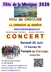 Fête de la Musique Genève 2023 et 2024. Concert au Temple de Carouge, le plus beau du canton. De retour en 2025.